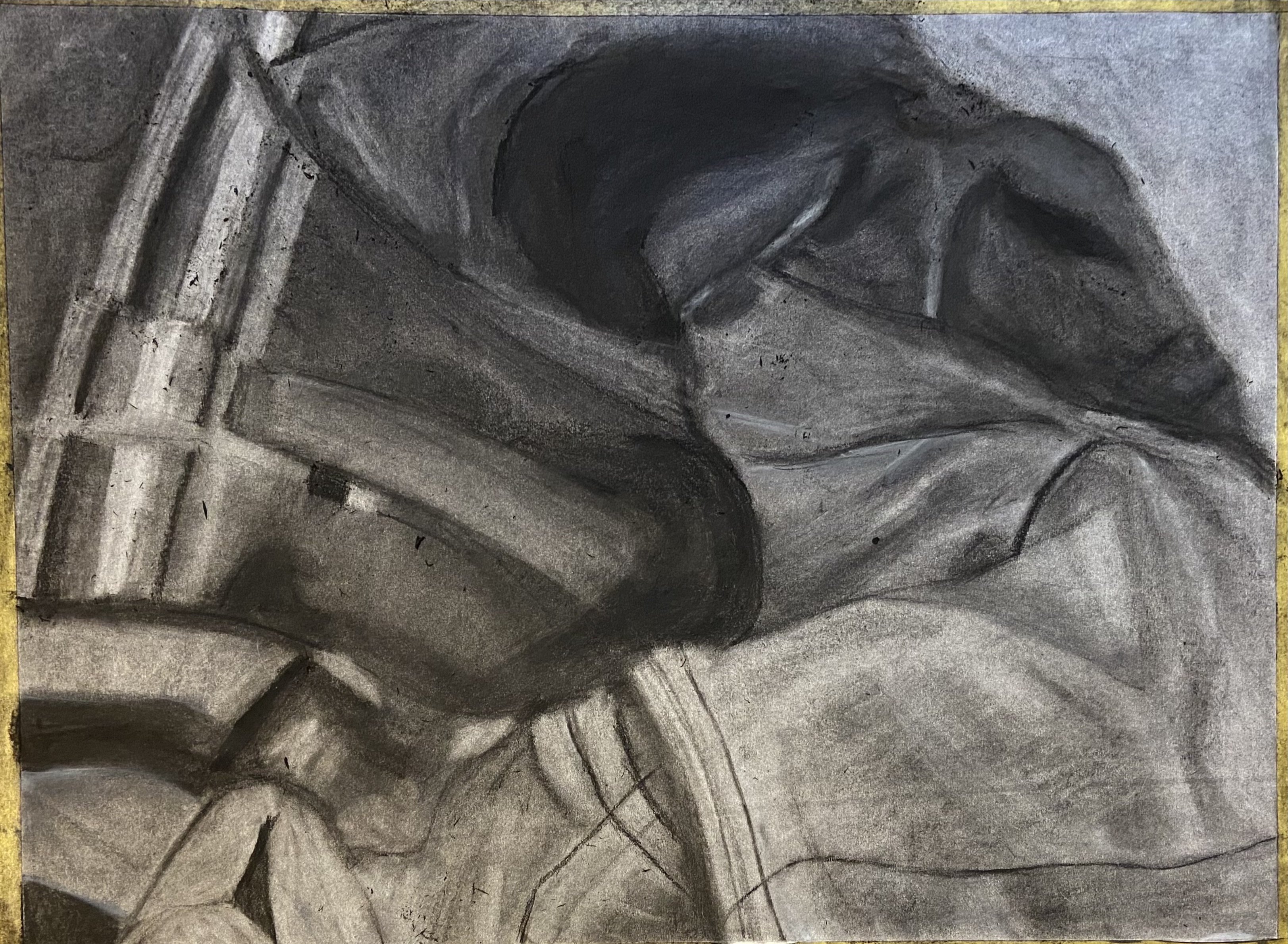 Laundry PileCreated for Drawing II at Delaware County Community College in 2022, this portrait of clothing was made with charcoal, blank canvas pens, and erasers. It was a self-observation piece that required multiple hours of viewing. |