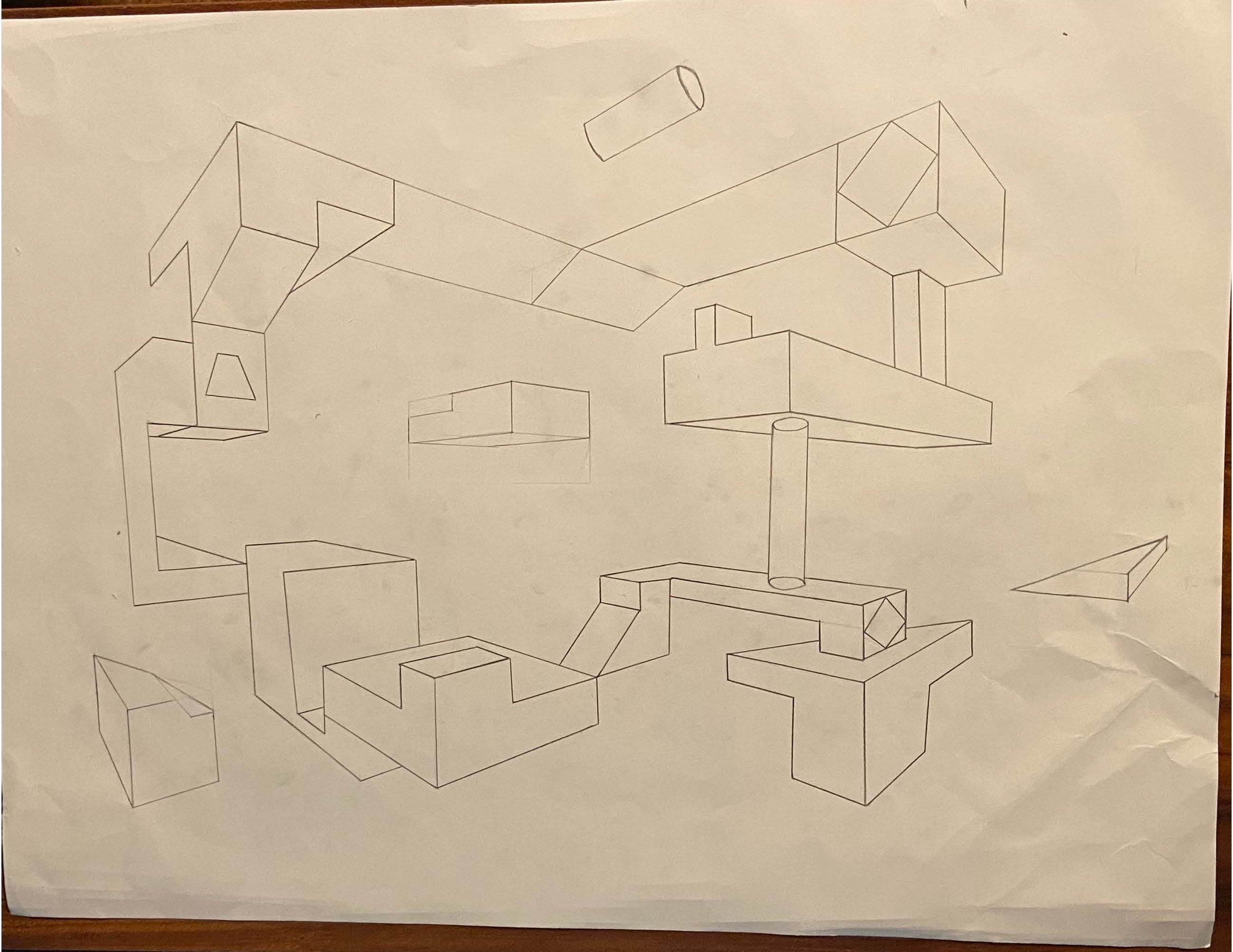 3 Point PerspectiveI completed Drawing II at Delaware County Community College in 2022, using various weighted pencils. I created multiple shapes of different lengths while employing three-point perspective. |